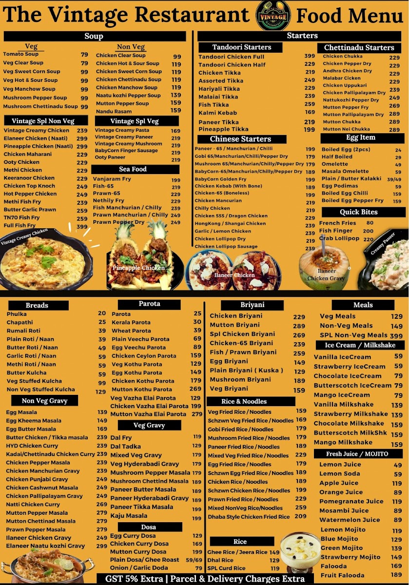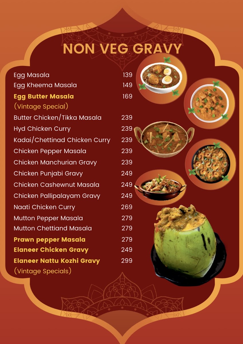 Menu highlights include the Chettinadu Soup and Mushroom Pepper Dry, which have garnered rave reviews for their rich flavors. The Vintage Creamy Chicken stands out as a must-try dish, offering a symphony of taste that leaves diners asking for more. While the Biryani and assorted meat dishes maintain decent quality, be mindful of your surroundings as the music can get loud, making intimate conversations challenging.